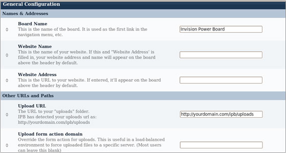The most important settings here are – Board Name, Website Name, Website Address. They are self-explanatory. You can leave the values of the rest of the settings unchanged. The last settings on the page allow you to turn on the debugging mode for the forum, enable the help documentation in the admin control panel and turn off the default forums navigation.