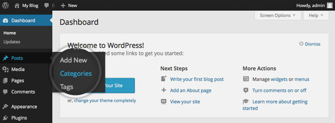 To create new categories in WordPress, you need to access the Posts -> Categories page first.